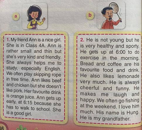 | 1. What's he(she) like? | nice, rather small and thin, kind and friendly | |