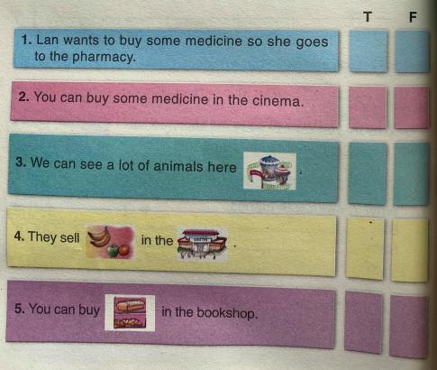 5. Phong: Where can I buy some medicine? Billy: Let's go to the ............ A. bakery B. pharmacy C. cinema | ![]() |