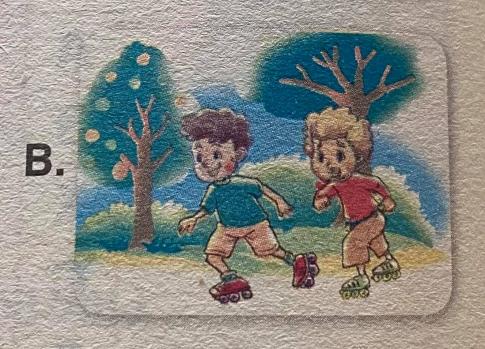 | 3. Tom enjoys going skating with his friend. They like to play in the afternoon after school. It's a great fun! | ![]() |