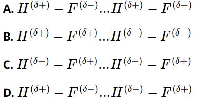 Câu 28: Sơ đồ nào sau đây thể hiện đúng liên kết hydrogen giữa 2 phân tử hydrogen fluoride (HF)?