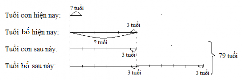 Ví dụ 5. Hiện nay tuổi bố hơn 5 lần tuổi con và 3 tuổi. Đến khi tuổi con bằng tuổi bố hiện nay thì tổng số tuổi của hai bố con bằng 79 tuổi. Tìm tuổi của mỗi người hiện nay.