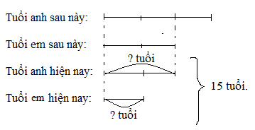 Ví dụ 3. Hiện nay, tổng số tuổi của hai anh em bằng 15 tuổi. Đến khi tuổi em bằng tuổi anh thì tuổi anh bằng