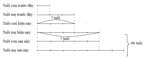Ta có sơ đồ biểu thị tuổi mẹ và con hiện nay là: