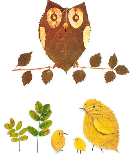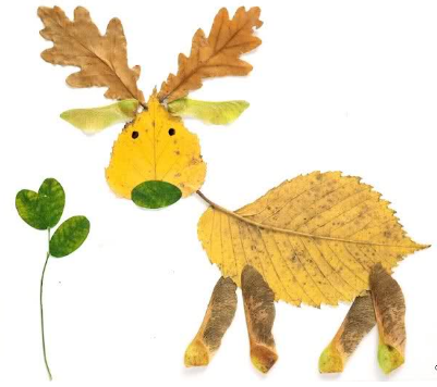 - Những vật liệu thiên nhiên cần chuẩn bị: lá cây, que gỗ, kéo, keo sữa, dây chun.
