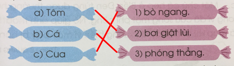 a. Tôm chỉ quen bơi giật lùi, cá chỉ biết phóng thẳng, cua chỉ bò ngang. Ba bạn chẳng ai nghe ai.