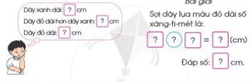 Sợi dây lụa màu xanh dài 35cm, sợi dây lụa màu đỏ dài hơn sợi dây lụa màu xanh 20cm. Hỏi sợi dây lụa màu đỏ dài bao nhiêu xăng-ti-mét?