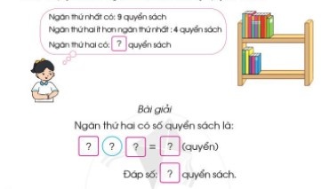 Ngăn thứ nhất có 9 quyển sách, ngăn thứ hai ít hơn ngăn thứ nhất 4 quyển. Hỏi ngăn thứ hai có bao nhiêu quyển sách?