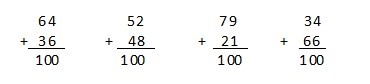 60 + 40 = 100 20 + 80 = 100 10 + 90 = 100 30 + 70 = 100