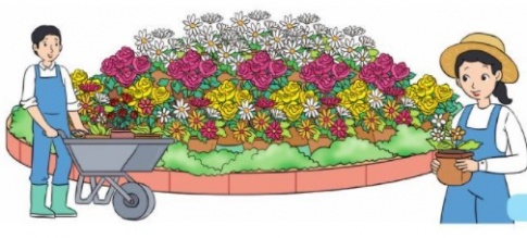 Đội công nhân mang đến vườn hoa tất cả số chậu hoa là: