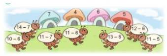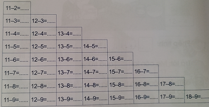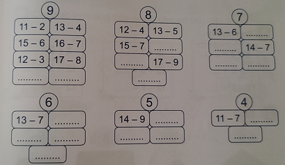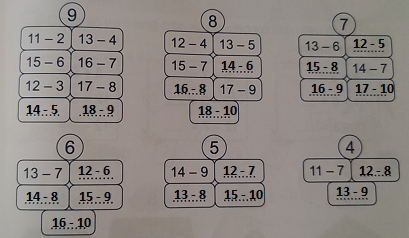 14 - 5 = ... 15 - 6 = ... 11 - 4 = ... 11 - 3 = ...