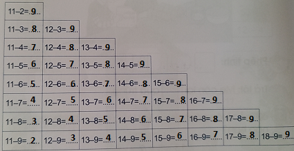Bài 4. Xem Bảng trừ rồi viết các phép tính còn thiếu vào chỗ chấm: