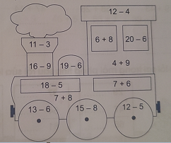 3 + 9 = ... 12 - 8 = ... 15 - 7 = ...
