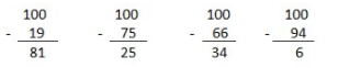 100 - 1 = 99 100 - 6 = 94 100 - 0 = 100