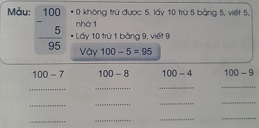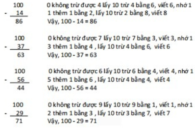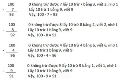 100 - 1 = ... 100 - 6 = ... 100 - 0 = ...