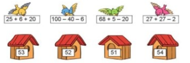 100 - 30 - 40 = ... 44 + 6 + 50 = ... 73 - 14 + 20 = ...