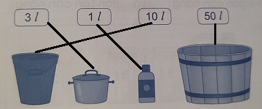 Bài 4. Nối thẻ ghi số lít thích hợp với mỗi đồ vật: