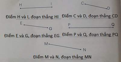 Bài 1. Viết tên các điểm và các đoạn thẳng trong hình sau (theo mẫu):