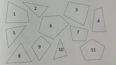 Các mảnh bìa hình tứ giác là: 1; 3; 4; 7; 9.