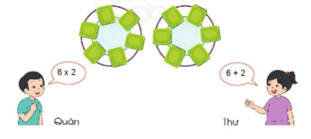 a. Ta thấy: đĩa 1 có 6 chiếc bánh, đĩa 2 cũng có 6 chiếc bánh. Như vậy 6 bánh được lấy 2 lần. Do đó bạn Quân đúng.