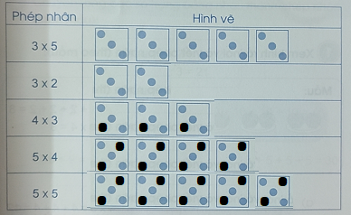 Bài 3. Vẽ các chấm tròn thích hợp với mỗi phép nhân (theo mẫu):