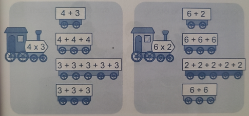 Bài 1. Xem hình rồi nói và viết phép nhân (theo mẫu):