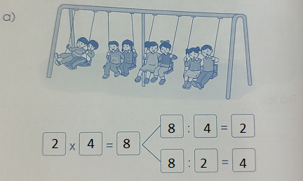 Bài 3. Viết phép nhân và phép chia thích hợp với mỗi tranh vẽ: