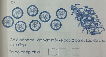 Bài 4. Xem tranh rồi nói và viết phép chia thích hợp: