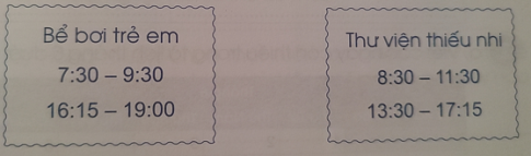 Bài 4. Hãy viết về thời gian mở cửa và đóng cửa của các địa điểm dưới đây: