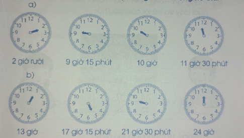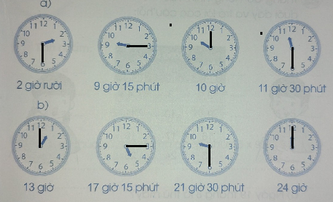 Bài 3. Vẽ thêm kim phút trên mỗi đồng hồ để đồng hồ chỉ:
