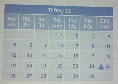 Bài 4. Xem tờ lịch tháng 12, viết tiếp vào chỗ chấm: