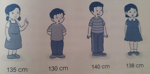 Chiều cao của các bạn học sinh theo thứ tự từ cao đến thấp: 140 cm; 138 cm; 135 cm; 130 cm