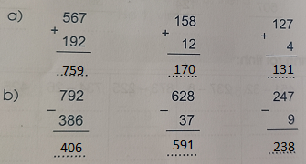 a) 230 + 20 = 250 150 + 350 = 500 405 + 45 = 450