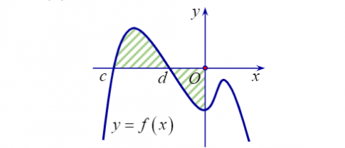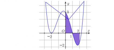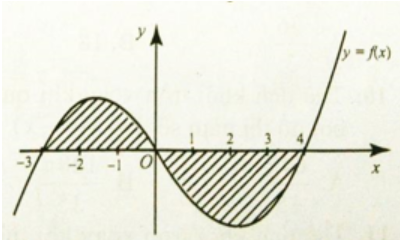 liên tục trên $\mathbb{R}$ và có đồ thị $(C)$ là đường cong như hình bên. Diện tích hình phẳng giới hạn bởi đồ thị $(C)$, trục hoành và hai đường thẳng $x= 0, x= 2$ (phần tô đen) là: