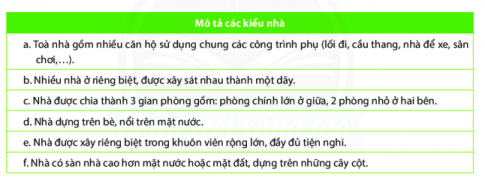 Em hãy quan sát hình ảnh 1.5 và chọn nội dung mô tả nhà phù hợp với mỗi hình.