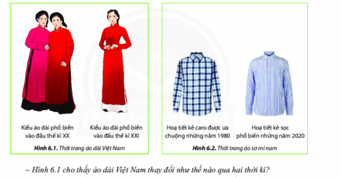 1. Hình 6.1 cho thấy áo dài Việt Nam thay đổi như thể nào qua hai thời kỉ?