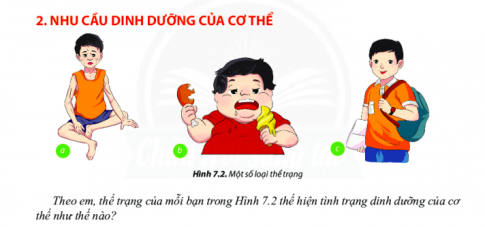 Theo em thể trạng của mỗi bạn trong hình 7.2 thể hiện tình trạng dinh dưỡng cơ thể như thế nào?