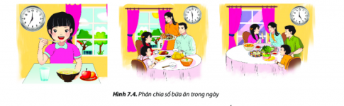 Em hãy quan sát sự phân chia các bữa ăn của gia đình trong Hình 7.4 và trả lời các câu hỏi dưới đây.