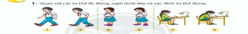 1. Quan sát các tư thế đi, đứng, ngồi dưới đây để xác định tư thế đúng: