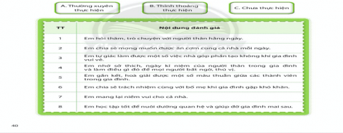 2. Với nội dung bản đánh gía dưới đây hãy xác định điều phù hợp với em.