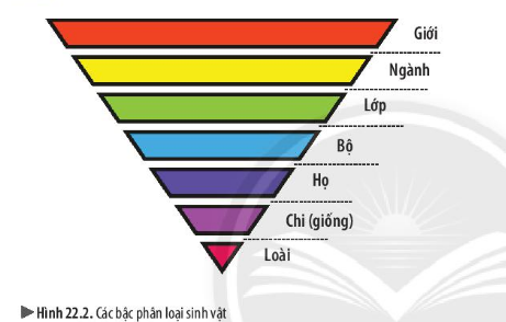 - Quan sát hình 22.2, em hãy kể tên các bậc phân loại sinh vật theo thứ tự từ thấp đến cao trong thế giới sống