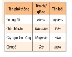 - Nêu cách gọi tên khoa học của một số loài sau đây, biết