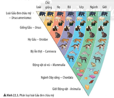 - Từ cách phân loại loài Gấu đen châu mỹ, em hãy cho biết các bậc phân loại của loài Gấu trắng trong hình 22.3