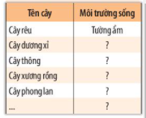 - Em hãy cho biết môi trường sống của thực vật bằng cách hoàn thành bảng theo mẫu sau: