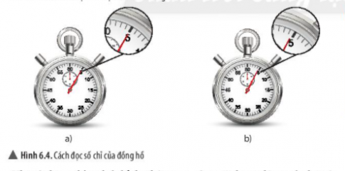 - Quan sát hình 6.4 và cho biết số chỉ của đồng hồ ở mỗi trường hợp là bao nhiêu? (Biết ĐCNN của đồng hồ này là 1s)