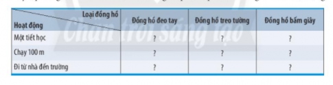 3. Hãy lập bảng theo mẫu và chọn loại đồng hồ phù hợp để đo thời gian các hoạt động: