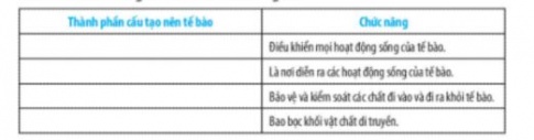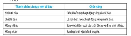 Gợi ý: Thành tế bào tạo thành bộ khung giúp tế bào có hình dạng nhất định, bảo vệ các thành phần bên trong tế bào; Không bào chứa các chất thải, chất dự trữ.