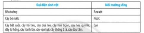 Câu 30.2. Cho biết các đại diện trên sống ở những môi trường nào bằng cách điền vào bảng theo mẫu sau: