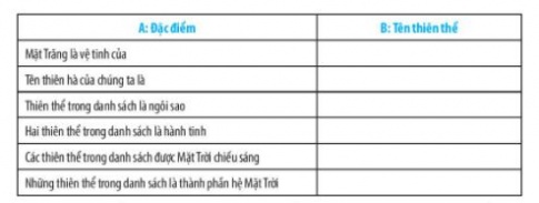 Mặt Trời và các ngôi sao là các thiên thể (1)... Các hành tinh (2)... ánh sáng mật trời.