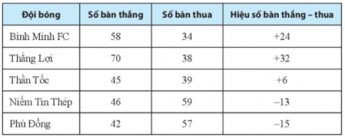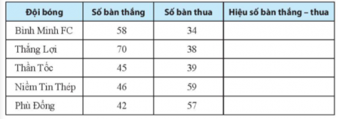 Bài 11. Trong bóng đá, nhiều trường hợp để xếp hạng các đội bóng sau một mùa giải, người ta phải tính kết quả của hiệu số bàn thắng - thua. Hãy tính hiệu số bàn thắng - thua của các đội bóng đá nam trong bảng dưới đây: