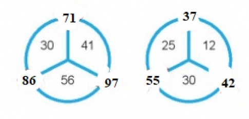 a) 4 + 5 = 9 b) 30 + 10 = 40 c) 52 + 41 + 6 = 99